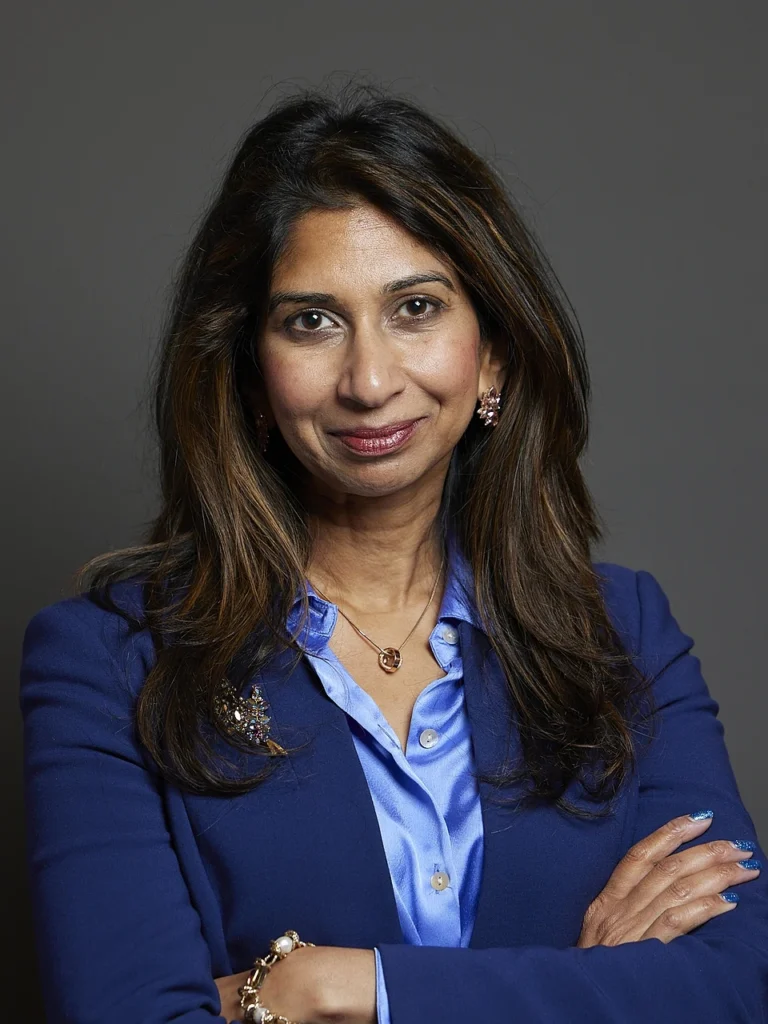 Mrs. Braverman rose to national prominence in senior roles in Conservative governments and is best known for her tenure as Home Secretary under Liz Truss and Rishi Sunak.