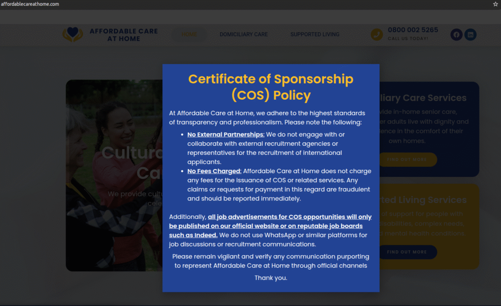 Cases like Micheal’s reflect a growing pattern of alleged CoS-for-cash scams, particularly within the care sector.
